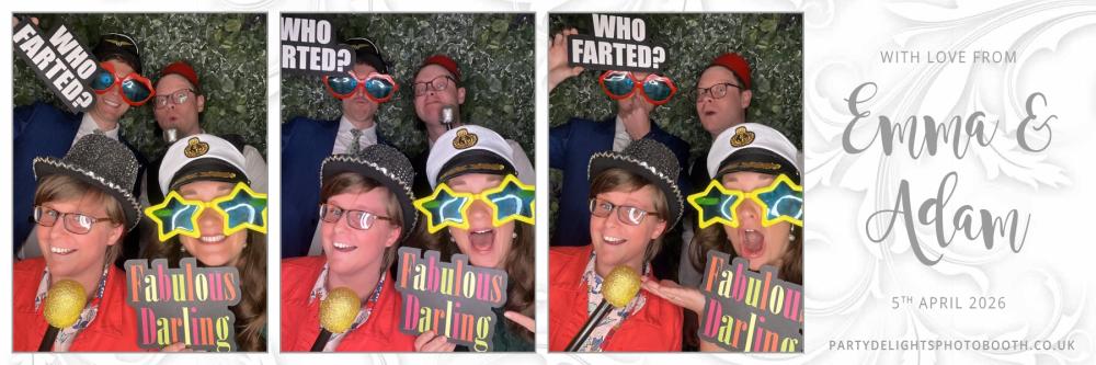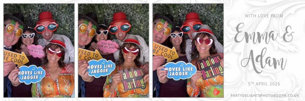 Thank you so much to everyone who attended Adam and Emma's Wedding at Post Barn on Sunday 5th Apr 2026. We hope you all had a great time using the photo booth, and enjoy browsing through your gallery below. Regards, Party Delights Photo Booth Team