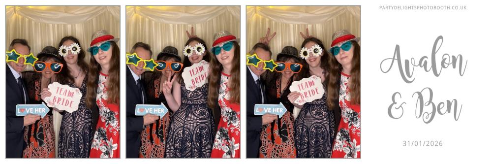 Thank you so much to everyone who attended Avalon and Bens Wedding at Audleys Wood Hotel on Saturday 31st Jan 2026. We hope you all had a great time using the photo booth, and enjoy browsing through your gallery below. Regards, Party Delights Photo Booth Team