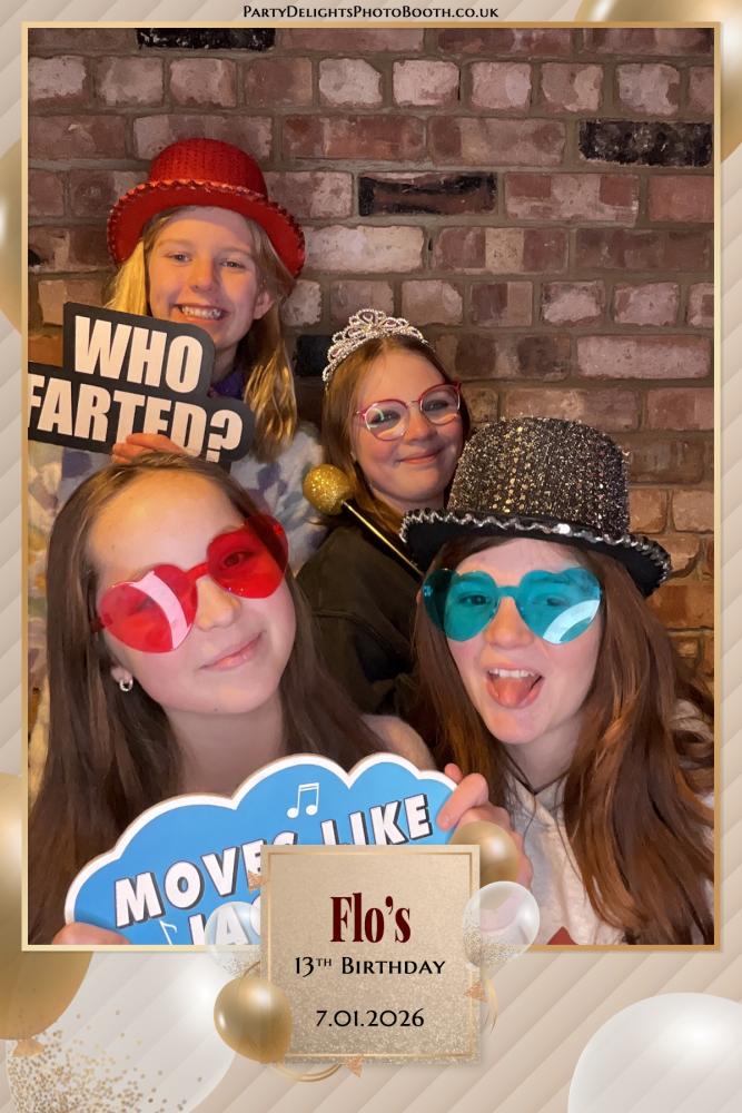 Thank you so much to everyone who attended Florence 13th Birthday Party at Christmas Pie Barns on Saturday 10th Jan 2026. We hope you all had a great time using the photo booth, and enjoy browsing through your gallery below. Regards, Party Delights Photo Booth Team
