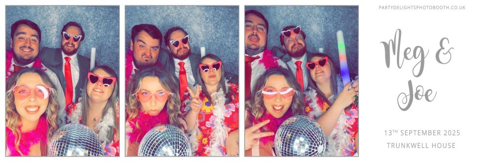 Thank you so much to everyone who attended Joe and Megs Wedding at Trunkwell House Hotel on Saturday 13th Sep 2025. We hope you all had a great time using the digital photo booth, and enjoy browsing through your gallery below. Regards, Party Delights Photo Booth Team