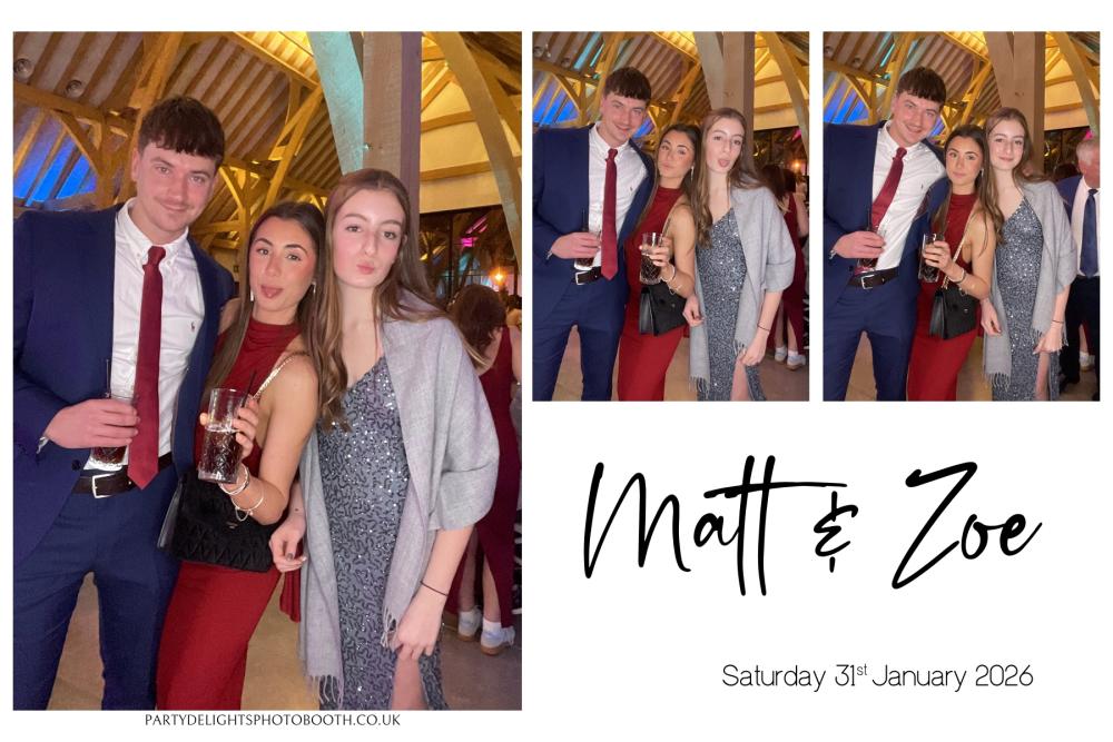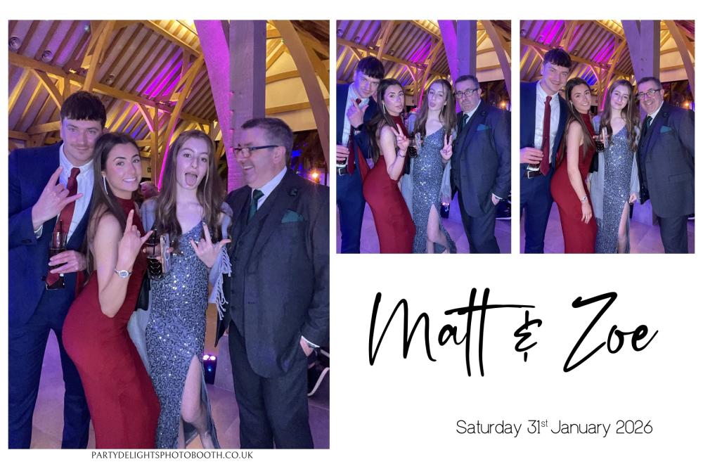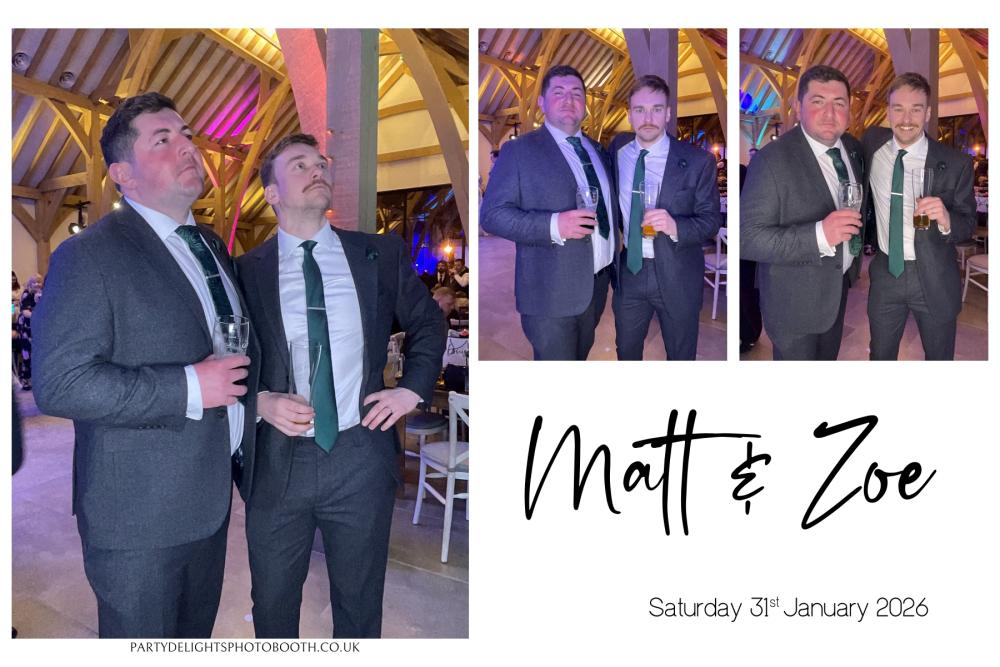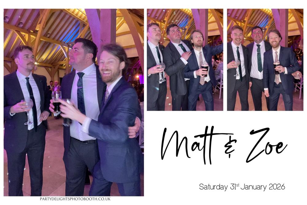 Thank you so much to everyone who attended Matt and Zoe's Wedding at Post Barn on Saturday 31st Jan 2026. We hope you all had a great time using the photo booth, and enjoy browsing through your gallery below. Regards, Party Delights Photo Booth Team